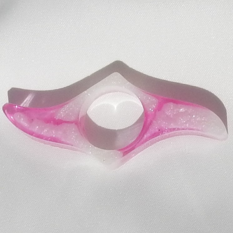 Bokholder Bølge i glitrende hvit og klar rosa resin.