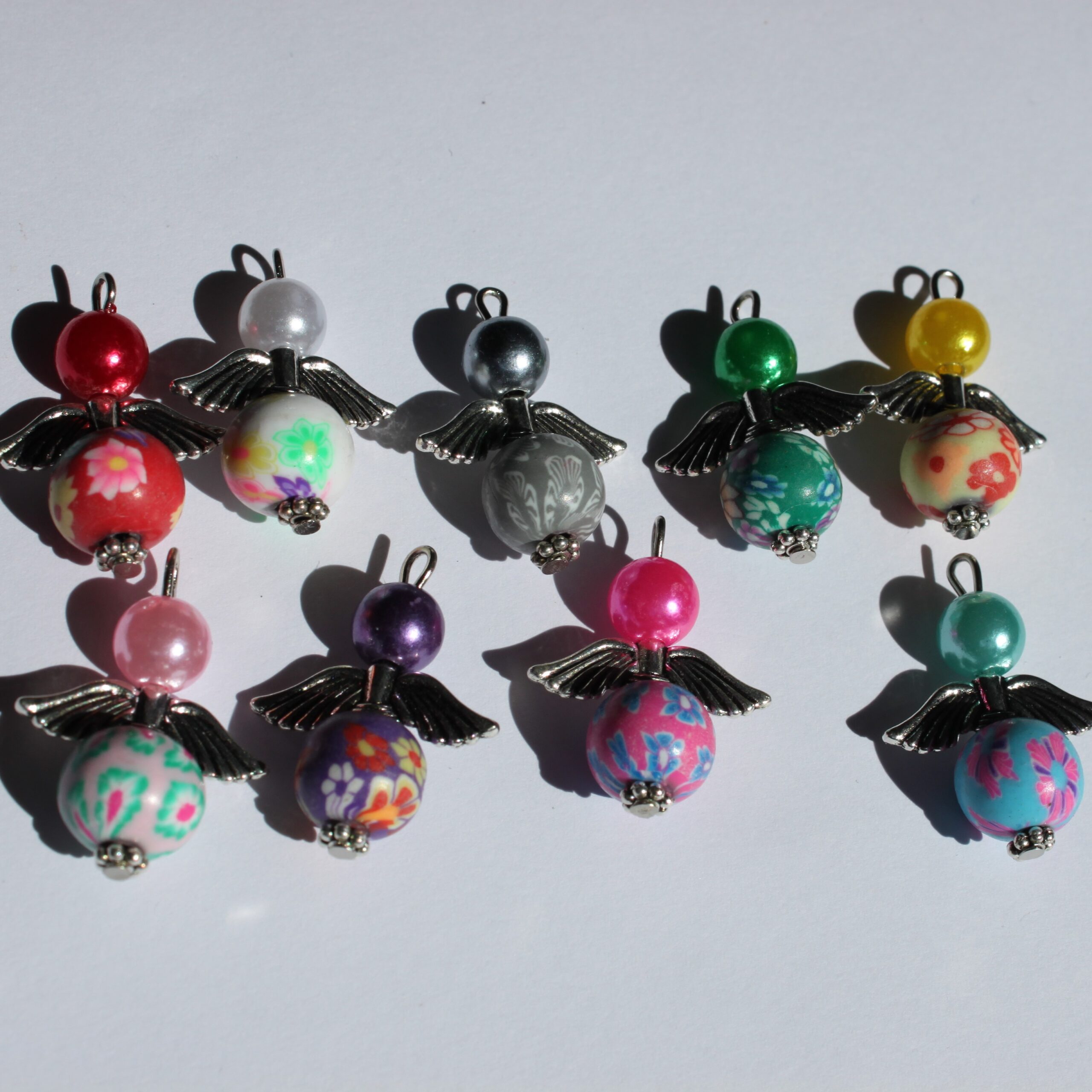 Engel som kan brukes som tilbehør til nøkkelring/veskepynt.