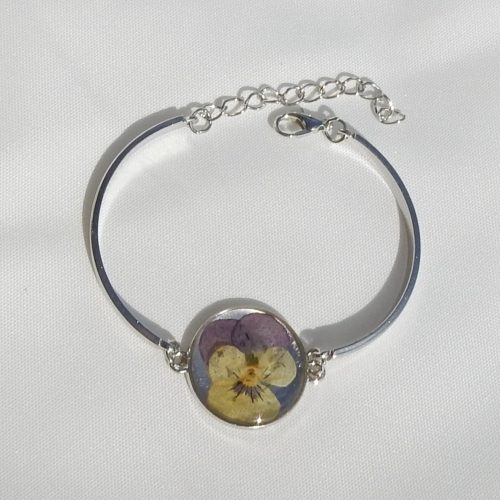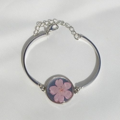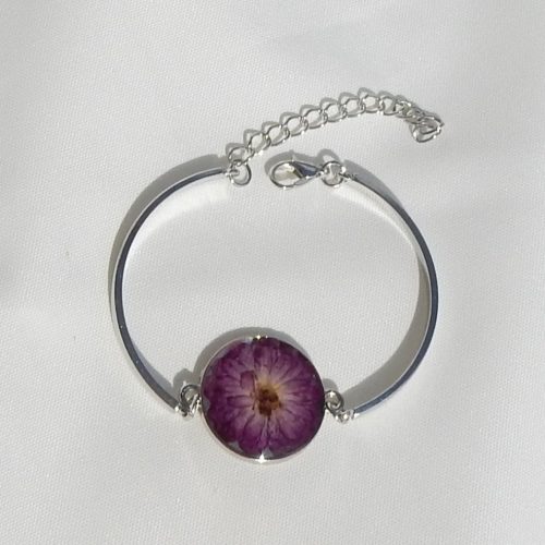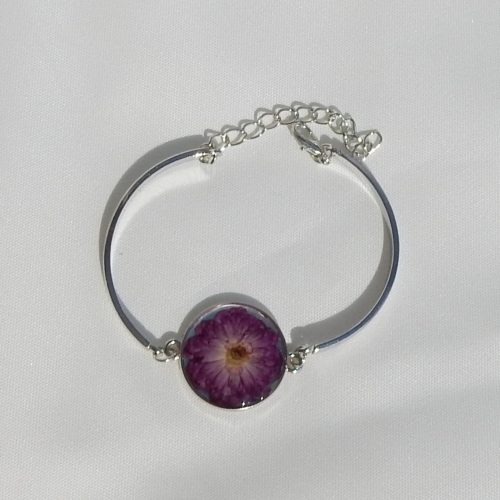 Armbånd – Delt Sølv – Mørk lilla blomst